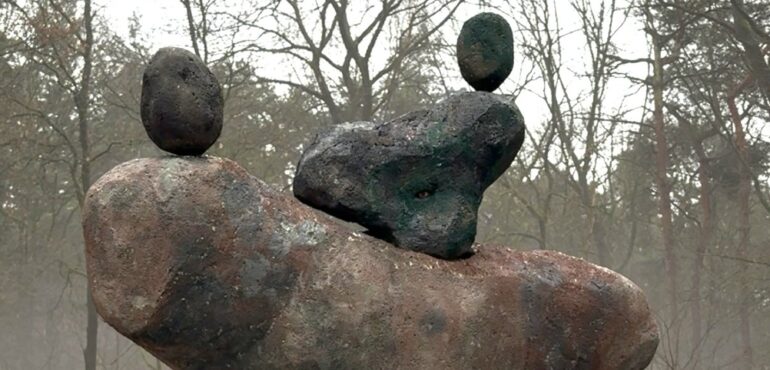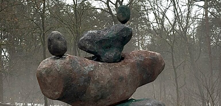 Cette sculpture s’inspire de l’art zen japonais consistant à équilibrer des pierres pour créer une sculpture.